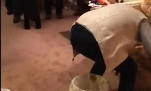 На кадрах члены ее семьи, разделенные на две команды, бегут до урны, зажав картошку между ягодицами. Добежав до ведра, они бросают корнеплод в него и убегают обратно.