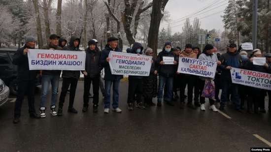 Бішкекте әр аймақтан келіп емделіп жатқан, гемодиализге мұқтаж 50-дей науқас мемлекеттік «Ала-Арча» резиденциясы алдында акцияға шықты.