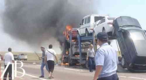 Официальный представитель Комитета по чрезвычайным ситуациям МВД РК Руслан Иманкулов подтвердил информацию о пожаре. По его словам, 15 июня в 12.35 на 186 километре автодороги Алматы-Ташкент произошел пожар грузовой автомашины для транспортировки легковых автомашин Volvo, а также перевозимых двух легковых автомашин.