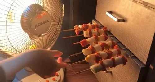 Блогер готовит блины, используя стенки от системного блока, жарит шашлык с помощью обогревателя, тушит мясо с овощами в кулере для воды.