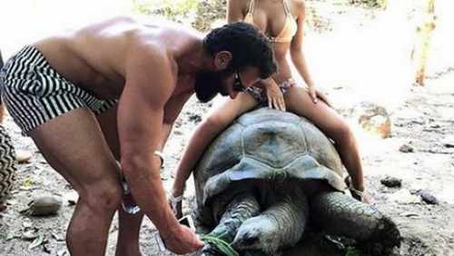 «Короля Instagram» раскритиковали за фото подружки на столетней черепахе