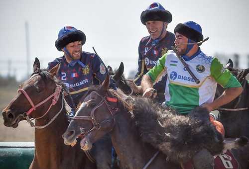 Новичками турнира в этом году стали французы. Сборная по хорсболу (французский вид спорта, который сочетает элементы баскетбола и регби, но на лошадях) уступила узбекистанцам со счетом 19:6. И, хотя спортсмены из Франции проиграли узбекистанцам и выбыли из состязаний, но они впервые играли в кок-бору, если не считать тренировки накануне.