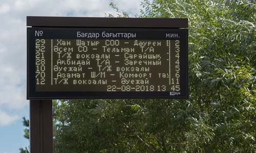 Подобные электронные табло установлены на остановках левобережья Астаны и частично в старом центре столицы.