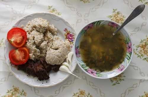 Вторым блюдом могут быть голубцы, плов, рагу, котлеты, гуляш или отварная курица. Гарнир стандартен: картошка, крупы или макароны.