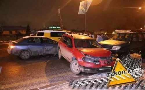 Аварии происходили на участке от Аль-Фараби вниз до улицы Диваева. Известно, что сначала столкнулись автомобили Mitsubishi Delica и Honda CR-V.