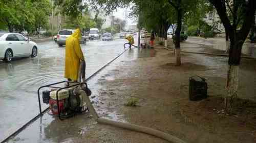 Для откачки дождевой воды на улицах Актау задействовано 12 единиц специальной техники.
