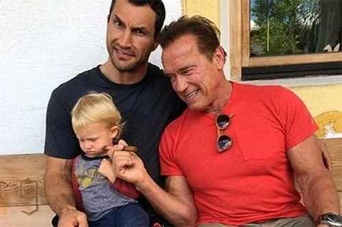 68-летний Шваценеггер посетил тренировочный лагерь Владимира Кличко в Гоинге (Австрия), где 40-летний боксер готовится к бою-реваншу с британцем Тайсоном Фьюри. Поединок пройдет 29 октября в Манчестере. Изначально он должен был состояться 9 июля, но 24 июня Фьюри объявил о переносе боя из-за травмы лодыжки.