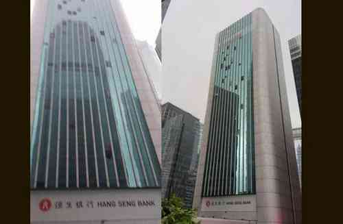 Согласно фото, которые прислали очевидцы, в Центральном банке Ханг Сенг видно, что разбиты окна.