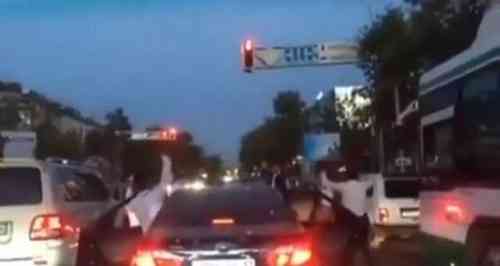 В Шымкенте на одной из центральных улиц молодые люди во время горения красного цвета светофора вышли из машины и начали танцевать посреди дороги, пишет Otyrar.KZ.