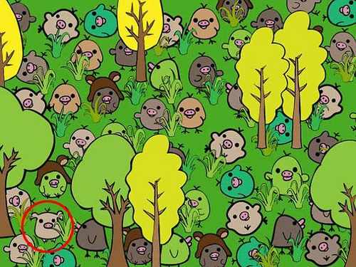 Согласно условию первой загадки, на изображении необходимо найти поросенка, который находится среди стаи птиц.