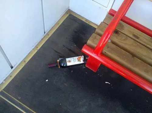 «А сегодня, 5 июня 2016 года, на остановке напротив 10 поликлиники, на 188-й улице я снова увидел подобное (выкладываю фото). Видимо, ночью там пьянствовали и разнесли лавочку. На полу валяются бутылки и мусор, лавочка поломана», — возмущается пользователь.