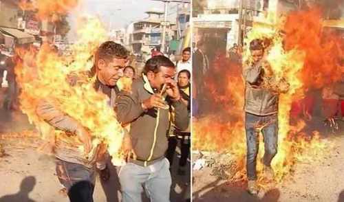 Как сообщает Daily Mail, участник пытался поджечь чучело правительства Пенджаба, но пролил бензин и загорелся сам. Как видно на кадрах, все тело мужчины охватило пламя. Остальные участники демонстрации пытались потушить огонь, но безуспешно.