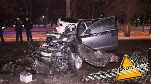 На высокой скорости автомобиль переехал несколько арыков и врезался в дерево.