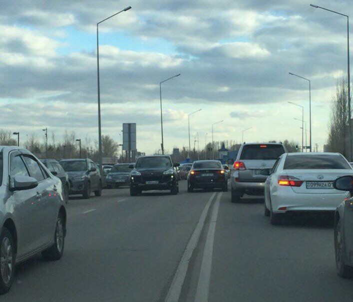 «13 апреля 2016 года в 18.45 водитель автомобиля KIA 549 ADM 1975 года рождения, следуя по улице Енбекшилер, выехал на полосу, предназначенную для встречного движения. Этот водитель привлечен к административной ответственности по статье 596 части 3 «Выезд на полосу, предназначенную для встречного движения». Согласно статьи 596 части 3 водителю грозит лишение прав на один год. Административный материал передан в суд для принятия решения. Авто принадлежит РГП автохозяйству «Управления делами Президента», — сообщили в полиции.