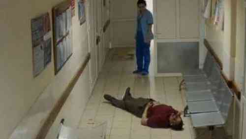 Все это время мимо окровавленного пациента проходили сотрудники больницы, которые обратили на него внимание после того, как у мужчины начались судороги. Санитары унесли его в 04:40, мужчина впал в кому, через девять дней ему сделали трепанацию черепа, еще через два дня он умер.