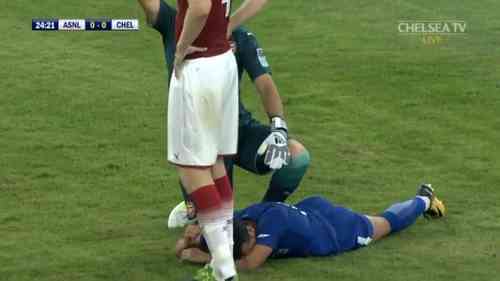 Встреча между «Арсеналом» и «Челси» прошла в Пекине и завершилась со счетом 0:3. На 25-й минуте Оспина попытался прервать выход Педро к воротам и в прыжке ударил его в лицо.