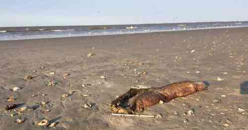 После урагана «Харви» на пляже в американском штате Техас обнаружили загадочного морского обитателя с острыми зубами. Его фотографии разместила в своем Twitter биолог Прити Десай, сообщает Lenta.ru.