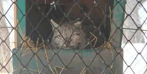 Рысь поймали и доставили в зоопарк Левобережного музея-заповедника. Животное пришло в город 11 декабря. Рысь, сидящую на беседке в районе школы №44 по улице Утепова, заметил дворник.